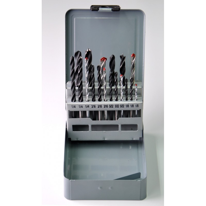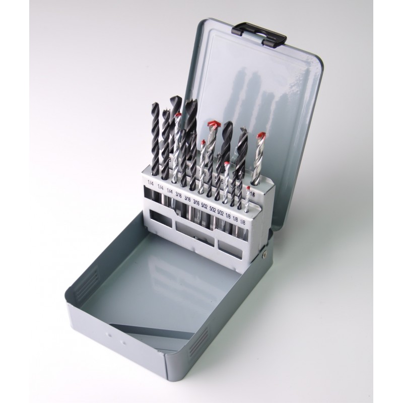 DRILLFORCE,18pcs Combination Drill Set (HSS Drill Bits, Brad Point Wood Drill, Masonry Drill.)