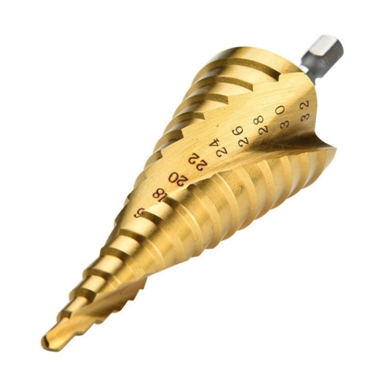 This is the New HSS Steel Large Step Cone Drill Titanium Bit Set Hole Cutter, which is made from high quality HSS steel, and with the Titanium coated to reduce friction and heat.